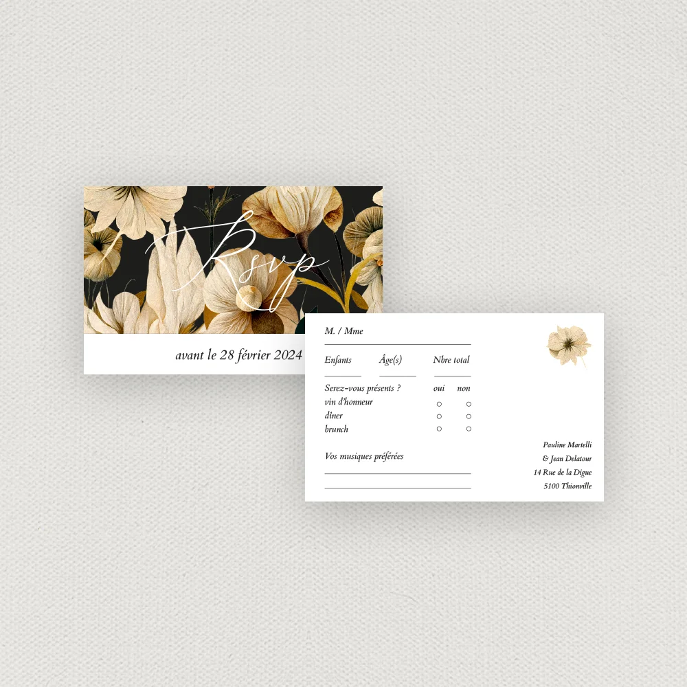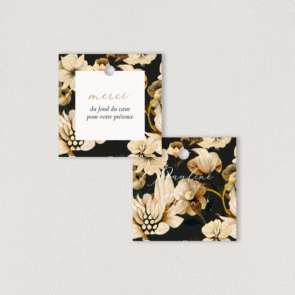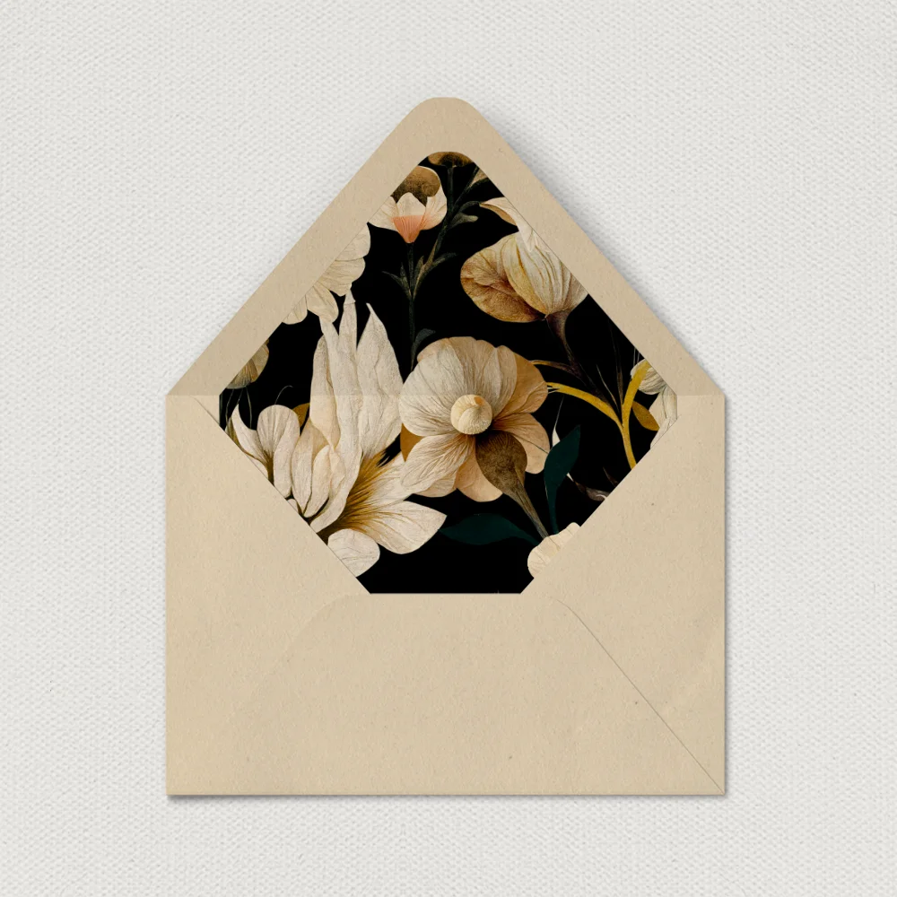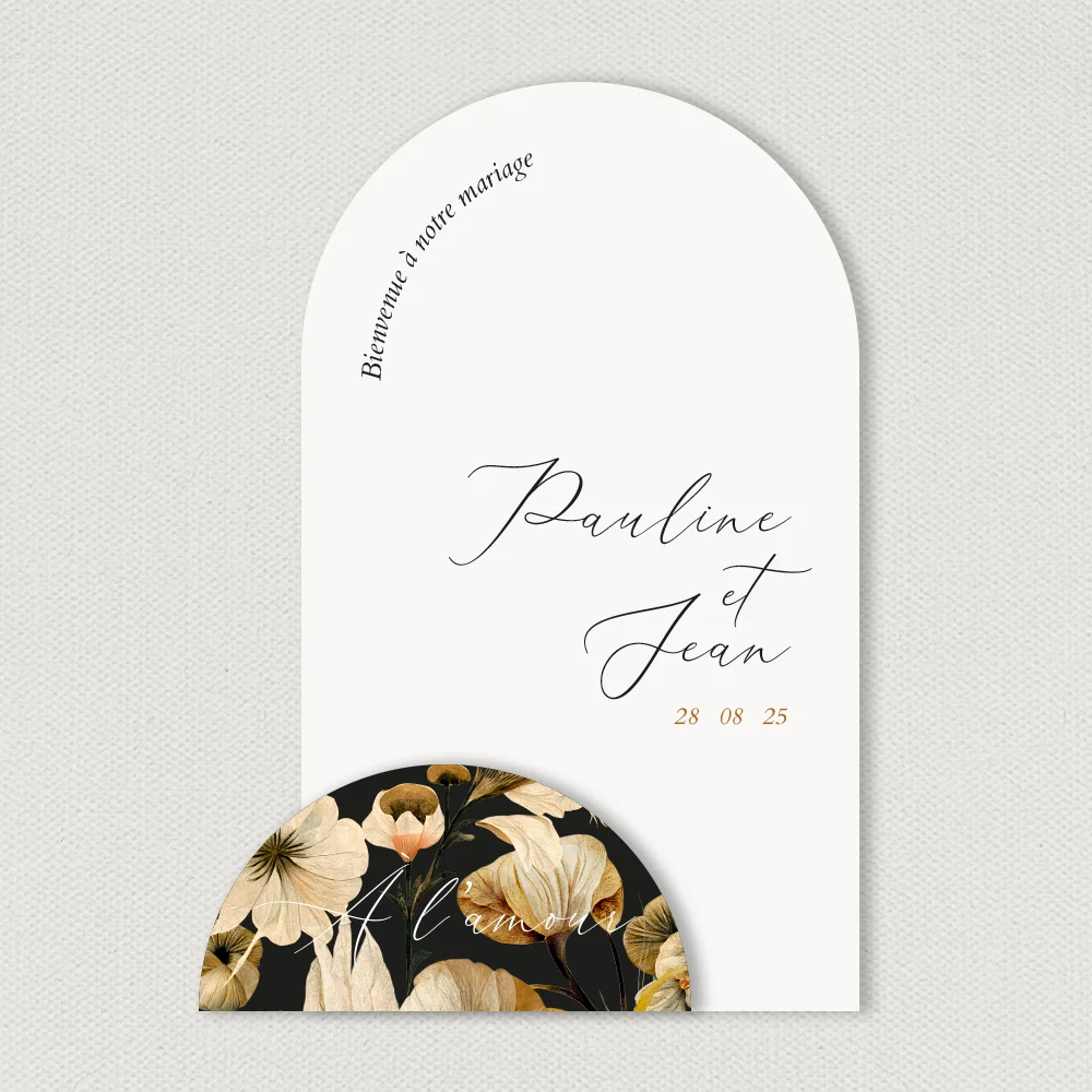La collection « Elea » incarne une élégance intemporelle pour sublimer l’annonce et la décoration de votre mariage. Ses nuances noir et beige, délicatement rehaussées d’un motif floral d’inspiration vintage, apportent une touche raffinée et pleine de charme à vos save the date, faire-part ou plans de table. Jouez avec les teintes, ajoutez un sceau de cire ou un ruban soigneusement choisi pour révéler l’atmosphère unique de votre union.